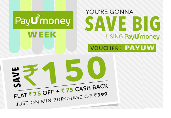 Note- Pay direct Payumoney And Get Flat Rs.75 OFF + Special Rs.75 Cashback ?on Min. Purchase of Rs. 399.